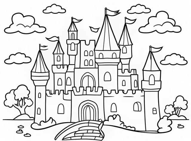 - Coloring Book Style: Features intricate, clean linework with bold outlines, combining detailed backgrounds and playful characters, making it ideal for traditional coloring books.