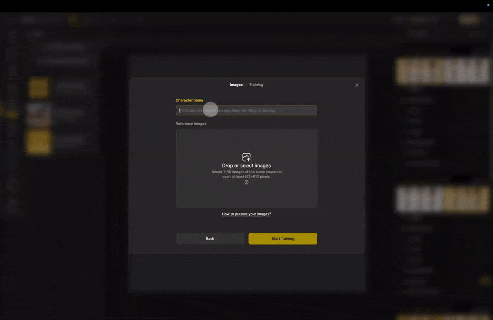 1. Name your character and upload photos (up to 30)
