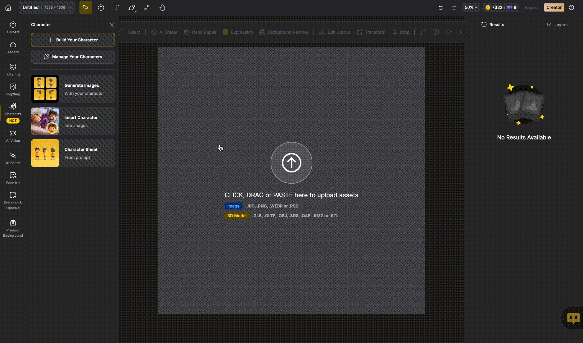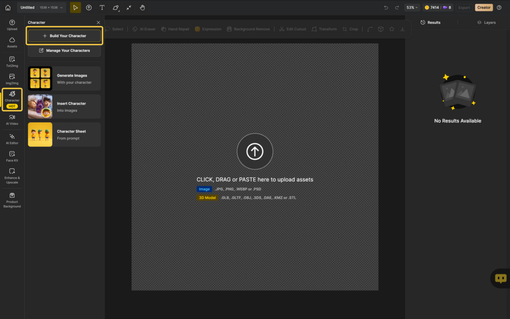• After uploading, begin training your exclusive character!