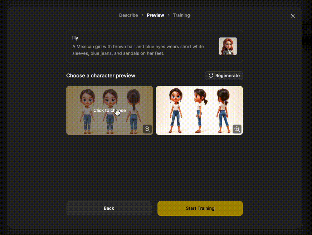 • Select preferred images to train as your exclusive character.
