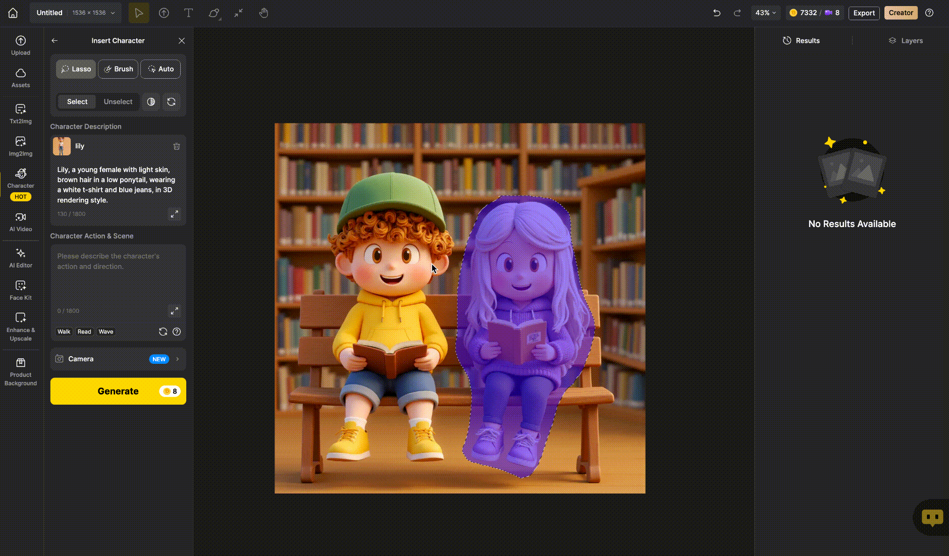 • Under “Character Actions & Scene”, describe what you want the character to do.