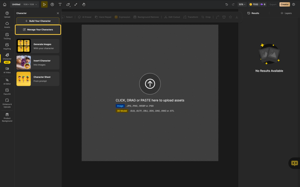 • Create your own AI characters from existing images and manage them!