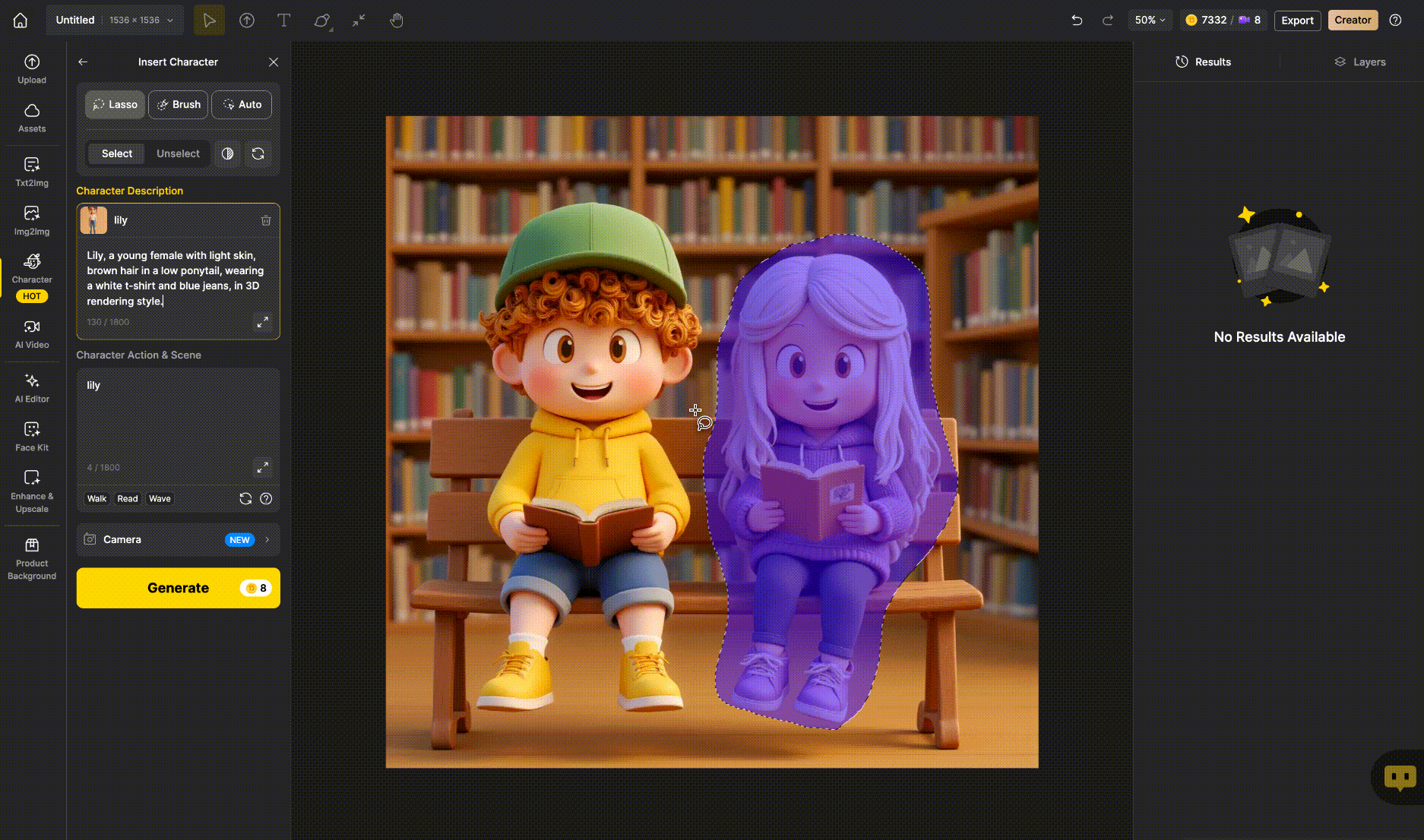 • Generate more images based on your created characters.