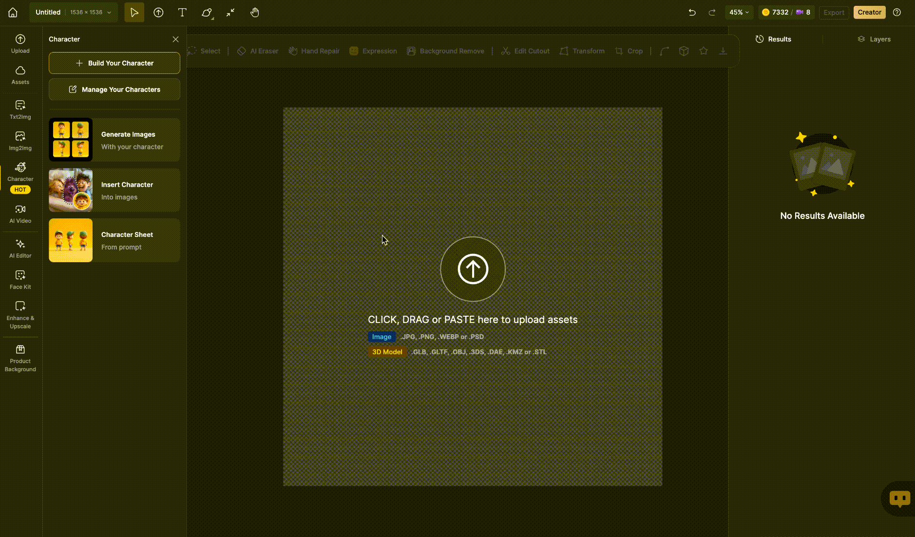 1. You can Use text or images to create your character.